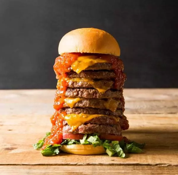 ※スタート時(パティ1 枚)の価格は1,290円+税、8枚重ねの価格は4,090円+税