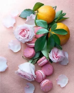 「オーロラ」は、フレグランスの香りが移ろうように、フレーバーの変化を楽しめる日本初登場のマカロン。トップノートのローズが花開いた後、やがて爽やかなベルガモットが重なり合い、ローズの香り高い風味を引き立てていく。またローマ神話における夜明けの女神「オーロラ」の名を冠したこのマカロンは、「バラ色の指」に「サフラン色の衣」を纏った、その女神の姿をイメージした華やかな見た目も魅力だ。