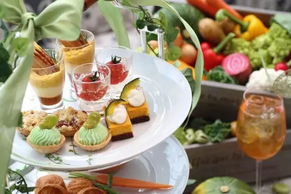 「野菜でスイーツ?Happy Vegetable Afternoon Tea」では、セイボリーからスイーツまで野菜をたっぷり使用し、約20種類の野菜を様々な形で楽しめるカラフルでヘルシーなアフタヌーンティー。