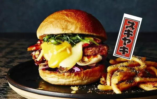 中でも注目の一品は、口の中でほどける柔らかさの牛バラ肉で作ったオリジナルのパティに、すき焼きを思わせる甘辛い醤油ダレと特製黄身ソースを合わせた「“スキヤキ”ベーコンチーズバーガー」。また、野菜にはソテーした春菊とグリルしたネギを使用し、ハンバーガーらしくスモークベーコンとゴーダチーズも挟み込んだ、正真正銘の日米コラボレーションバーガーだ。
