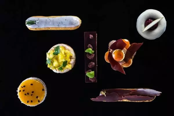 「ブラック アフタヌーンティー by セバスチャン・ヴォークション」は、ミシュラン一つ星を獲得したフランス人パティシエと、好きなスイーツ4種類をセレクトし自分好みにカスタマイズできるアマン東京の「ブラックアフタヌーンティー」がコラボレーションしたもの。タッグを組むのは、2018年フランスグルメガイド「ゴ・エ・ミヨ」において、ベストパティシエにも輝いたセレブリティ・パティシエ「セバスチャン・ヴォークション」だ。