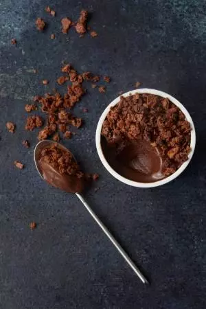 「グラス クルスティヤントゥ」は、3つの味を用意。濃厚なビターチョコレートアイスには、ビターチョコレートと焦がしバターでコーティングしたフイユティーヌを合わせた。