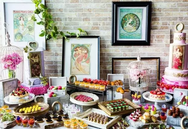 コンラッド東京にて、展覧会「みんなのミュシャ ミュシャからマンガへ ― 線の魔術」とコラボレーションした週末限定「みんなのミュシャ」スイーツビュッフェを開催。期間は、2019年7月13日(土)から9月8日(日)まで。