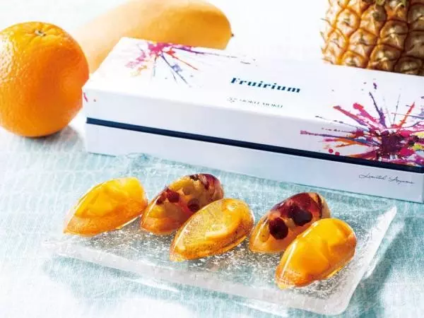 「フリュイリウム」は、インテリアとしても人気の植物標本「ハーバリウム」より着想を得た新感覚のスイーツ。しっとりとした食感のフィナンシェとジュレを合わせ、夏らしい爽やかな味わいに仕上げた。