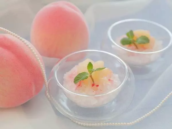 ラ・スイート初のピーチアフタヌーンティーでは、旬の桃を存分に堪能できる“桃づくし”のメニューを用意。桃とヨーグルトのパンナコッタや白桃のムース、桃のメレンゲ、白桃のタルトをはじめ、夏の季節に嬉しいひんやりスイーツ・ ピーチ入りミニかき氷もラインナップする。