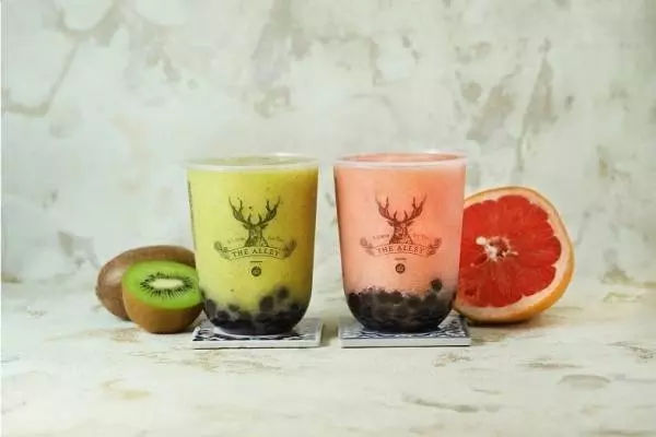 ジ アレイ×展覧会「みんなのミュシャ」、絵画着想タピオカスムージーがキウイ&グレープフルーツの2種で