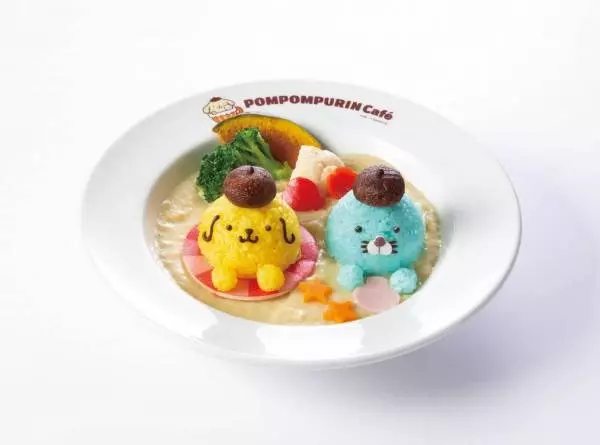 フードメニューには、“ぼのぼの”ともなかの浮き輪をつけたポムポムプリンが海水浴を楽しんでいるシーンをイメージしたカレー「ふたりでス~イスイ♪ホワイトカレー」、ポムポムプリンの顔を描いた野菜&ハンバーグ入りのイングリッシュマフィンと、“ぼのぼの”をモチーフにしたミートドリアを主役にしたセットメニュー「ポムポムプリンのイングリッシュマフィンとぼのぼのドリア」がラインナップ。