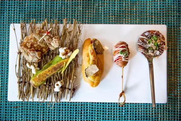 皮付きヤングコーンのバターロースト/フレンチ風お好み焼き/トリュフ香るカルボナーラドック/スモークチーズのアメリカンドック風/プロヴァンス風唐揚げなど