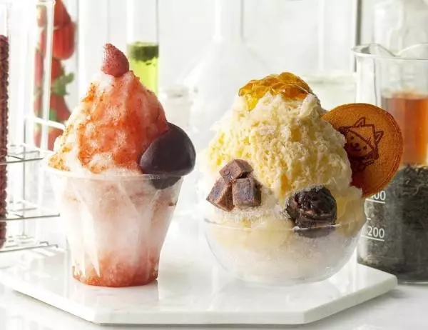 伝統ある老舗和菓子店「とらや」が手掛ける「トラヤカフェ(TORAYA CAFÉ)」からは、十勝産小豆で作ったあん、西表島産黒砂糖、カナダ産メープルシロップ、寒天で作る人気商品「あんペースト」を使ったかき氷が登場。たっぷりのあんペーストと自家製蜜を合わせた、いちご・抹茶の2種類のフレーバーが用意されている。