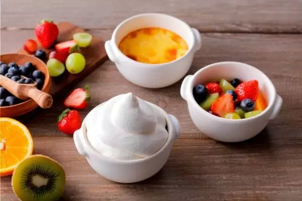 北海道産の生クリームで作った濃厚プリンに5種類のフルーツをのせた「5種の果実と生クリームプリン」は、フルーツの甘酸っぱさとともに、生クリームの豊かな風味をふんだんに味わえる1品。ソフトクリームもしくは生クリームをトッピングすることも可能だ。