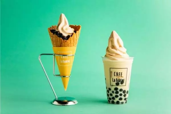 そんな「ラ・ボエム クアリタ 渋谷」から夏限定で登場するのが、自家製のミルクティーソフトクリームを使用した2種類のタピオカスイーツだ。自家製のミルクティーソフトクリームは“紅茶のシャンパン”とも言われるダージリン紅茶の茶葉を使用し、香り高く優雅な味わいに仕上げている。