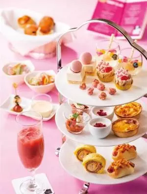 「バービー アフタヌーンティー(Barbie Afternoon Tea)」では、バービーのファッショナブルな衣装や出身地であるアメリカの料理からインスピレーションを受け、バービーの世界観を帝国ホテル流に表現。スタンドには、ピンクをアクセントカラーにした“可憐なスイーツ”とセイボリーが並んでいる。