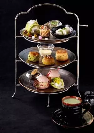 また、今回提供される3段のティースタンドには、ランデブーラウンジの象徴である「光の壁」をイメージした黄金の器が使用され、スイーツたちを華やかに彩る。数種類の日本茶や紅茶など心休まるドリンクを嗜みながら、"和(なごみ)"の時間をぜひ味わってみては。
