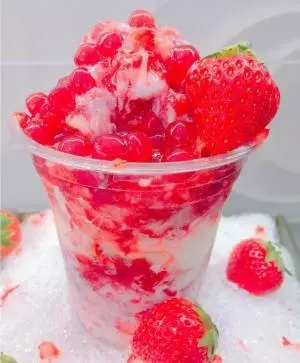 冷凍苺をそのまま削った“タピオカ苺かき氷”名古屋の苺スイーツ専門店で、清涼感溢れるシャンパンも