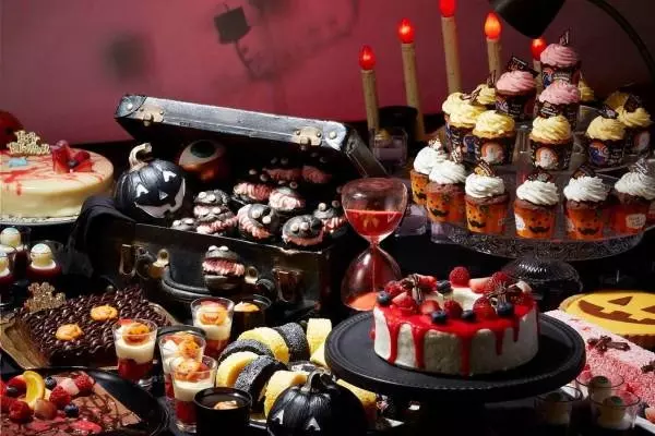 サンシャインシティプリンスホテルでは初開催となる「ハロウィーンスイーツフェア」。“ちょっとコワくて、おもしろ楽しい”ハロウィンパーティーを表現した、20種類のスイーツが勢揃いする。