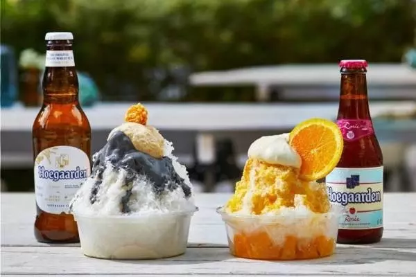 また、今回登場する2種のかき氷はそれぞれ「ヒューガルデン」とのペアリングを念頭に開発したもの。