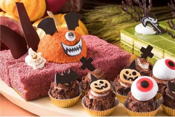 ハロウィンスイーツブッフェがスイスホテル南海大阪で、モンスターが乗ったキャラメルと洋梨のムースなど