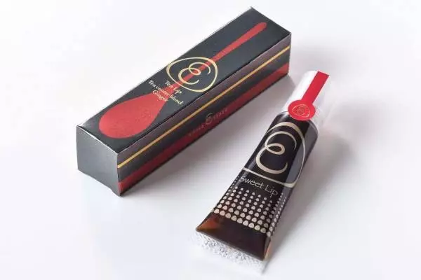 有平糖をベースにみつあめをチューブに入れ、リップグロスのように仕上げた「スイートリップ」。「ティーリップ」は、スウェーデン王室御用達の北欧紅茶「ティーセンターブレンド」を使用し、じっくりと抽出するところからこだわって作った「スイートリップ」の秋冬限定シリーズだ。