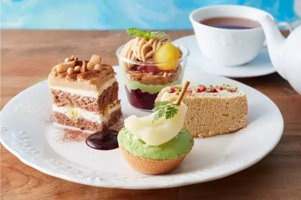 「ゴッホ展コラボレーション 秋のスペシャルアフタヌーンティー」は、4種のスイーツと好きな紅茶のペアリングを楽しめる限定メニュー。第1弾と第2弾に分け、「ゴッホ展」のテーマ“人生を変えた2つの出会い”にインスパイアされた、色彩豊かな秋のスイーツを揃える。