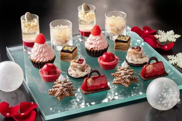 スイーツには、チョコサブレをアクセントに加えた赤いハンドバッグモチーフのチョコレートムースや、ジンジャーブレッドで作ったスノーツリー、ラズベリーの酸味が効いたハート型のシュトーレンなどを用意。