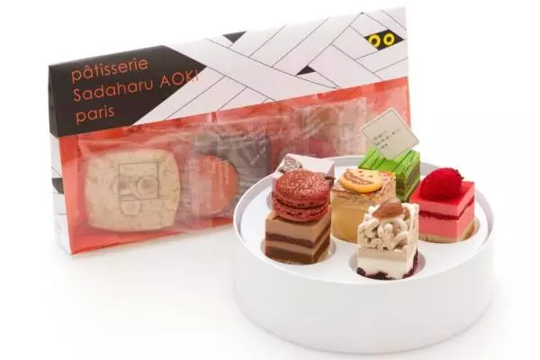「デギュスタシオン ハロウィン」は、コンパクトなサイズ感で"四角いケーキ"の定番3種と限定3種を詰め合わせた。限定3種には、濃厚なマロンクリームに、酸味のある"赤い"フルーツを合わせたアオキ流モンブラン「マロン フリュイ ルージュ」と、洋梨のコンポートとほろ苦いキャラメルが絶妙の「ポワール キャラメル」の季節限定2種に加えて、今回のケーキボックスでしか味わえない「カシスィエ」が登場。ショコラ生地に甘酸っぱいカシスのクリームを合わせ、上にはハロウィンらしいコウモリ型のチョコをトッピングする。