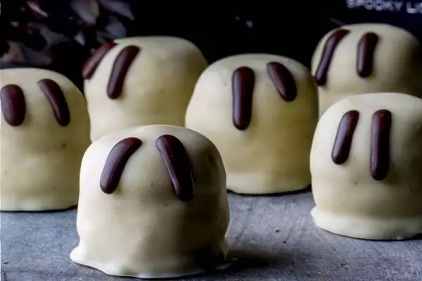 今回登場する「ハッピーゴースト クリームキス」は、アーモンドペーストのベースの上に、リコリス風味のメレンゲクリームを絞り、ホワイトチョコレートでコーディング。一口頬張れば、カリッとしたホワイトチョコレートの後に、ふわとろ食感のメレンゲクリームが口いっぱいに広がる。