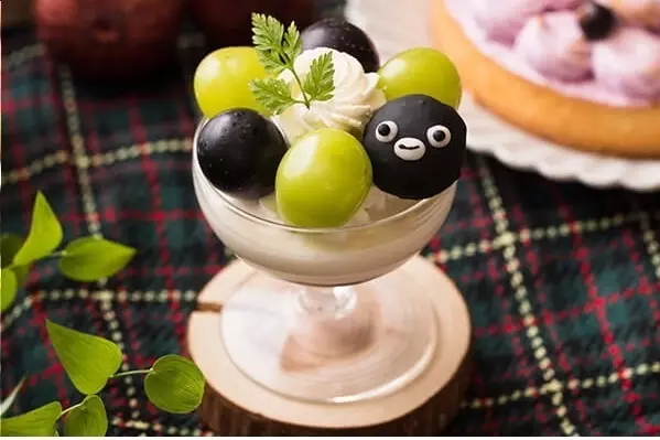 さらに、1人ひとつ限定の「Suicaのペンギン 葡萄のミニパフェ」もラインナップ。香り高い赤ぶどうのゼリーに、ヨーグルトムースと爽やかな白ぶどうのゼリーを重ねた。上には、旬のシャインマスカットとナガノパープルをたっぷりとのせた。葡萄に紛れて顔を出すペンギンにも注目だ。