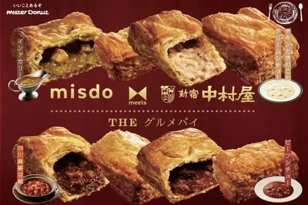 ミスタードーナツと「新宿中村屋」のコラボレーションによる新作シリーズ「misdo meets 新宿中村屋 THE グルメパイ」が、2019年10月1日(火)よりミスタードーナツ全店にて数量限定で発売される。