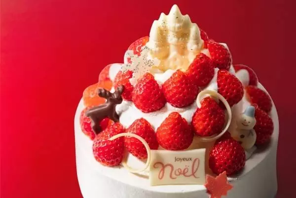 2014年の「雪ふるイブの苺たち」がデザインを新たに登場。それは真っ赤な苺のらせん階段がてっぺんの“雪のお城”へと誘う、ファンタジックなケーキだ。雪だるまやトナカイもあしらわれ、見た目にも楽しげに。