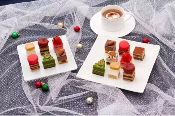 サダハル・アオキのクリスマスプレート、抹茶のモミの木型オペラなど6種のミニケーキ