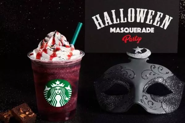 スターバックス「ハロウィン ダーク ナイト フラペチーノ」夜の仮面舞踏会をイメージ