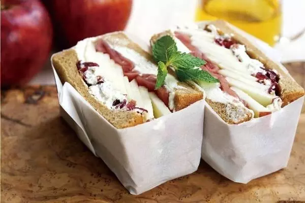 スペシャルサンドイッチ「アップル アップル リコッタ」は、秋に旬を迎えるリンゴをたっぷり使ったスイーツサンド。シャキシャキ食感のフレッシュリンゴのスライスに、はちみつとローズヒップティーでやわらく煮込み、シナモンの香りをつけたリンゴのコンポートを添え、2種類の食感や甘さを楽しむことができる。