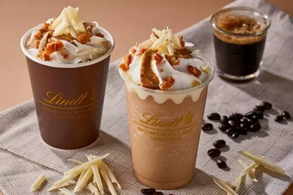 「リンツ アイスチョコレートドリンク モカ」と「リンツ ホットチョコレートドリンク モカ」は、ホワイト、ミルク、ダークの3種類のフレーバーから選んだ好みのフレーバーに、店舗で1杯ずつ丁寧に抽出したエスプレッソをブレンドして仕上げるチョコレートドリンク。アイスは、シャリっとした食感とすっきりとした後味で、一方ホットは、なめらかな口あたりで甘さの余韻が続く1杯だ。