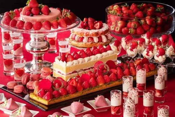 中でも注目したいのは、約6銘柄のいちごを食べ比べすることができる“フレッシュいちごの食べ比べコーナー”。各銘柄の異なる味わいを比較しながら楽しめる。さらに、定番ショートケーキやいちごのタルトといった約12種類のいちごを使ったケーキ、グラスデザートがずらりと並ぶ。
