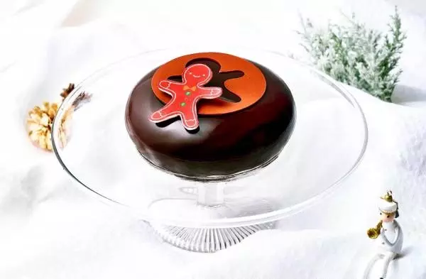 かわいらしい人形をかたどった“ジンジャーブレッドマン”が飛び出すようなケーキ「ジンジャーブレッドマンのアントルメ」。ベースのチョコレートスポンジにはジンジャースパイスを効かせ、さらにマンダリンオレンジやヘーゼルナッツのムースを重ねた。シャンパーニュやワインとの相性も良い、風味豊かなケーキに仕上げている。