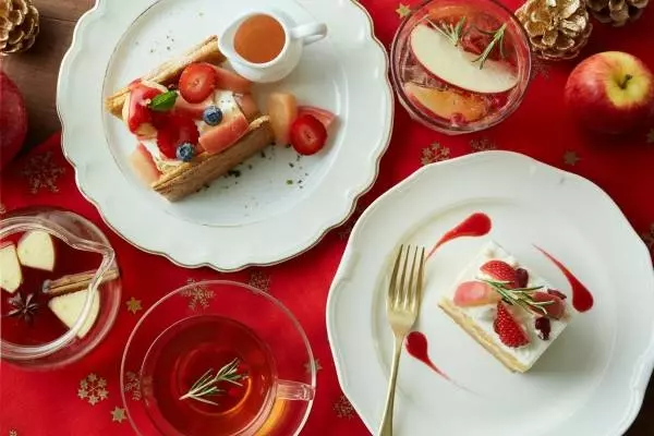 アフタヌーンティーのクリスマス限定りんごスイーツ、青森りんごのミルフィーユやティラミスなど