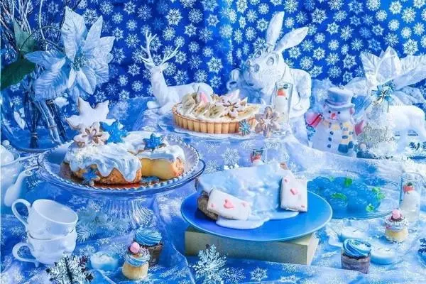 英国文学「不思議の国のアリス」をモチーフにした東京・池袋のファンタジーレストラン「古城の国のアリス」では、2019年11・12月の一部日程限定で「アリスのスイーツビュッフェ ブルー スノー コレクション」を開催する。