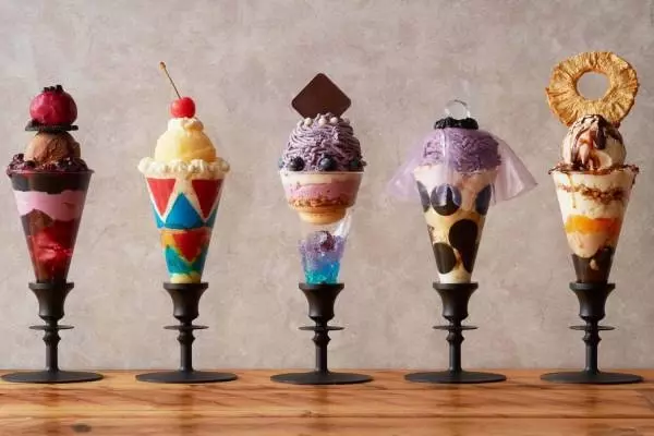 注目のメニューは、ARとスイーツを組み合わせた「魔法パフェ」。バリエーションは、ブルーベリーと赤ブドウの“トワイライト”、ゆずとチーズケーキの“ピエロ”、パイナップルとヘーゼルナッツの“サーカス”など5種類。カシスとチョコレートの“コリドール”とピーチとヨーグルトの“タロット”にはお酒が入っており、大人な味わいを楽しむことができる。