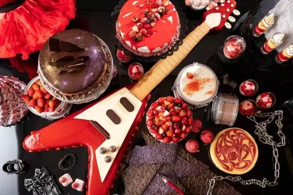 “ヘヴィーメタル”苺デザートビュッフェがヒルトン名古屋で、実寸大ギターケーキやドラム型ティラミス
