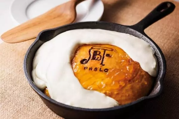 パブロとホテル阪急インターナショナルのコラボレーションによりユニークなパンケーキが誕生。イメージしたのは、パブロ人気のチーズタルトだ。