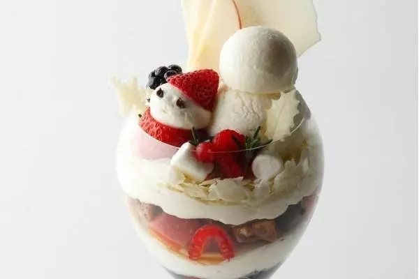 12月のパフェ「ホワイトチョコレートとリンゴ、ベリーのクリスマスパフェ」