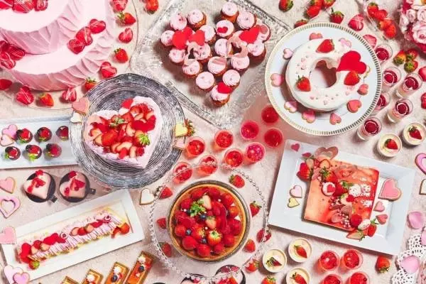 ハートモチーフを散りばめた、苺づくしのデザートブッフェ