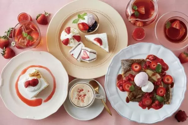 第1弾では、いちごとこしあんをホイップクリームとともに挟んだサンドイッチ、いちごとゆずで爽やかに仕上げたレアチーズタルト、 紅茶ゼリーといちご、ストロベリーアイスを重ねたチャイぜんざいを用意。