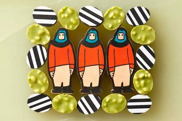 箱を開けると、ミントとコーヒーフレーバーのエイリアン、ラズベリーやローズを練り込んだサイケデリックなストーンが現れる。間には、ナッツやベリーをトッピングしたチョコレートを敷き詰めている。