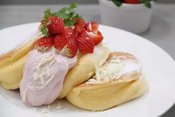 幸せのパンケーキから期間限定“たっぷりいちご”ショートパンケーキ、ホワイトチョコを散りばめて