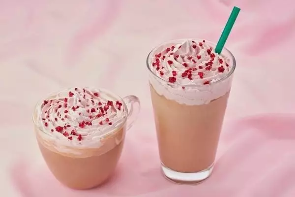 ピンク色の「ルビーチョコ」を使ったホワイトモカ