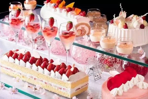 夜の桜デザートブッフェ「桜ジャーニー」横浜ベイホテル東急で、さくら色のケーキやフルーツカクテル