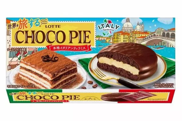 ロッテのロングセラー商品「チョコパイ」の新作「世界を旅するチョコパイ<本格イタリアンティラミス>」が、2020年2月25日(火)より全国で発売される。