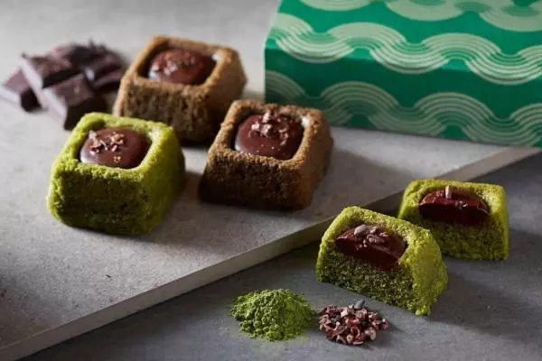 今回のコラボレーションでは、卵・乳製品・小麦・白砂糖を一切使用していない、ヴィーガン・グルテンフリー仕様のブラウニーを共同で考案。宇治抹茶もしくはほうじ茶を使用したブラウニー生地に、日本茶とも相性が良いドミニカ共和国産カカオのチョコレートを使ったガナッシュを合わせた、抹茶とチョコレートの抜群のコンビネーションが魅力の一品だ。