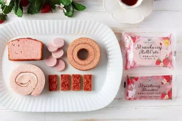 あまおう莓のクリームをスポンジ生地で巻いたロールケーキ、莓の香り豊かな厚切りパウンドケーキ、あまおう莓のフルーツソースをサンドしたバウムクーヘン、あまおう莓のジャムを使ったチョコクッキー、キャラメルにあまおう莓のジャムを合わせたフロランタンの全5種類の商品が展開される。